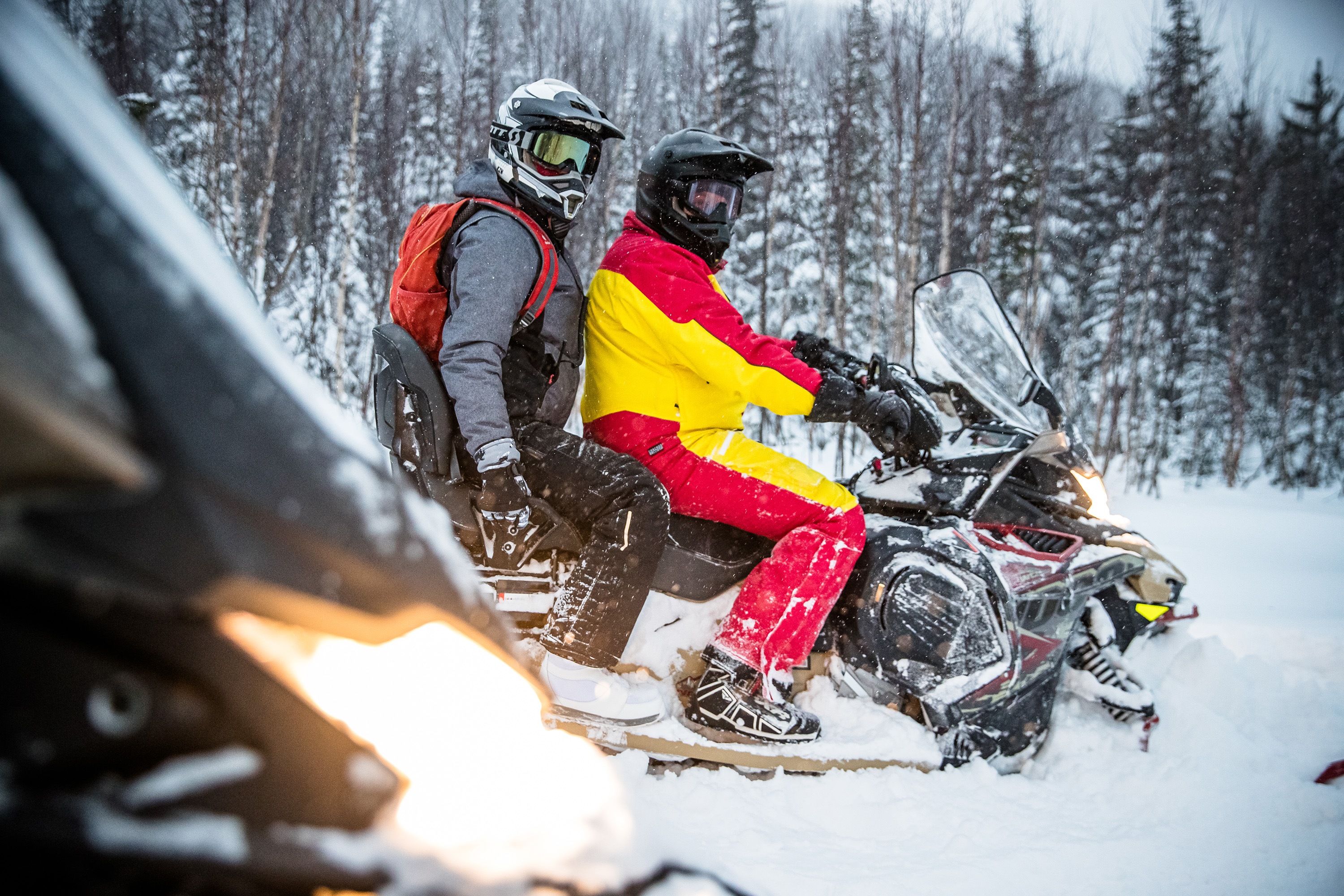 Широкая гусеница, мощный двигатель, эффективная подвеска — все то, что нужно для передвижения на снегоходе с пассажиром или в